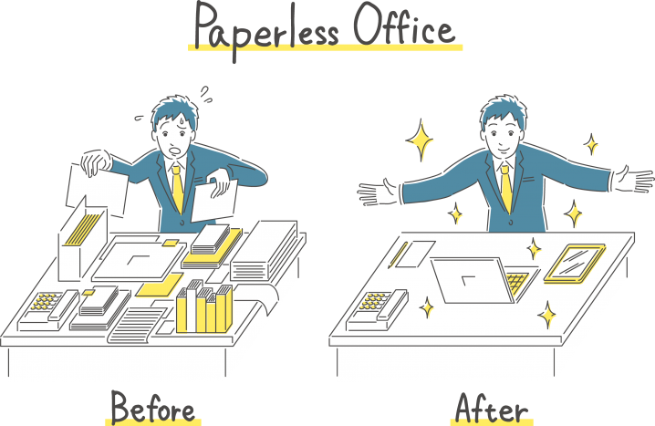 上記の対応をDocuWorksを活用することにより、従来の「電子データをわざわざ印刷して紙文書で長期保管する」という業務を大幅に効率化することが可能になります。