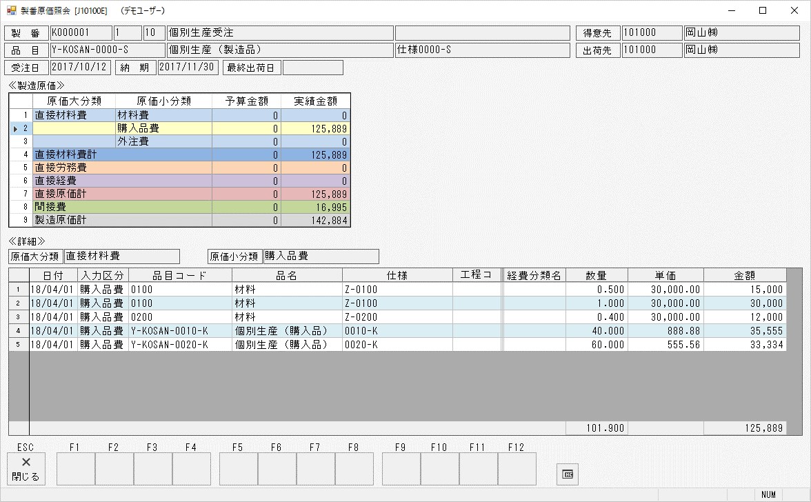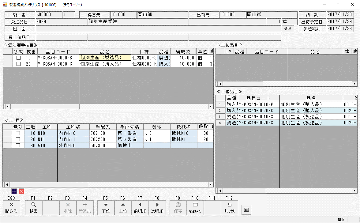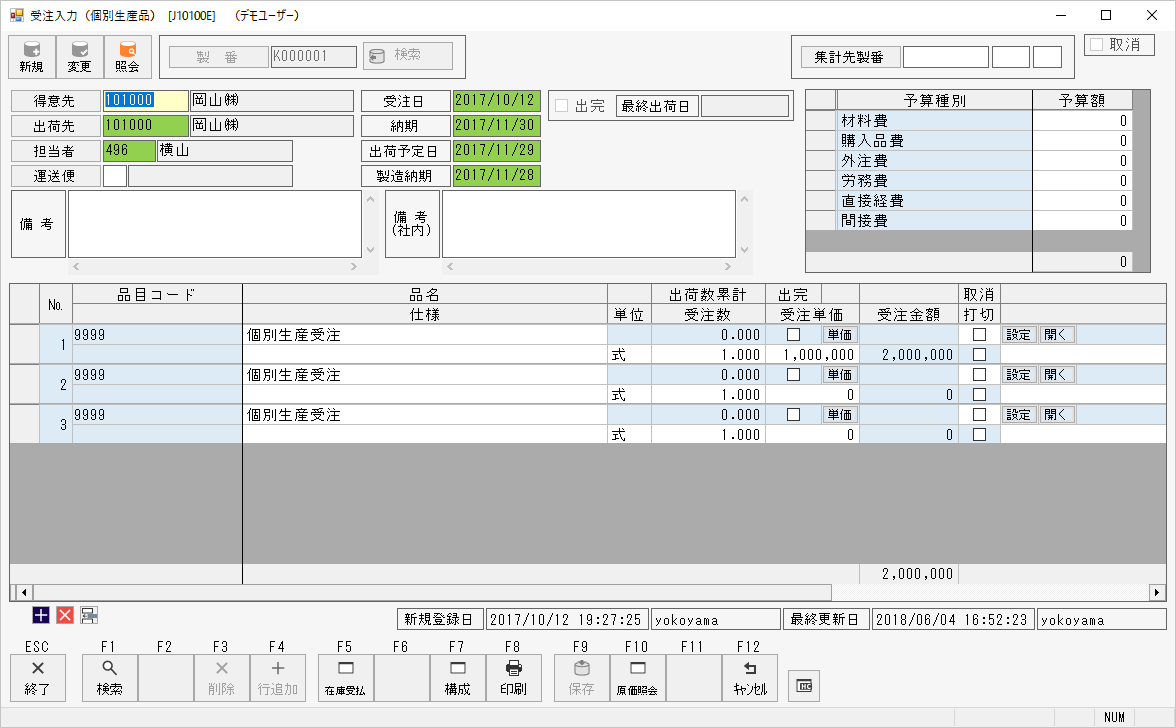 受注入力(個別生産品)