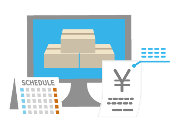 受注残・発注残を含めた有効在庫管理や、部署・機械負荷状況の把握など、余剰在庫の削減、ボトルネック工程を把握できる仕組みを提供します。